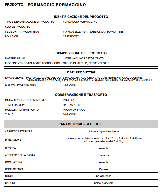 Di seguito l'elenco dei prodotti in vendita nelle varie sedi del nostro caseificio.